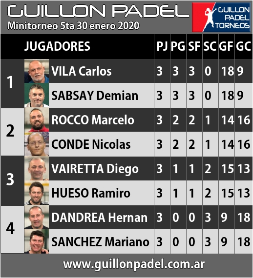 | Torneo Guillon Padel | J | G | SF | SC | GF | GC | ||