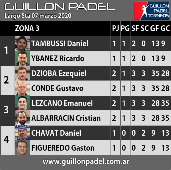 | 3 | ![]() | Lezcano Emanuel | 2 | 1 | 3 | 3 | 28 | 35 |