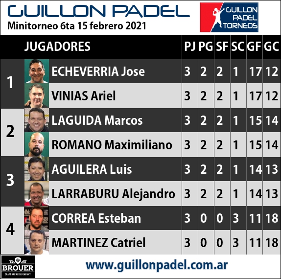 | Torneo Guillon Padel | J | G | SF | SC | GF | GC | ||