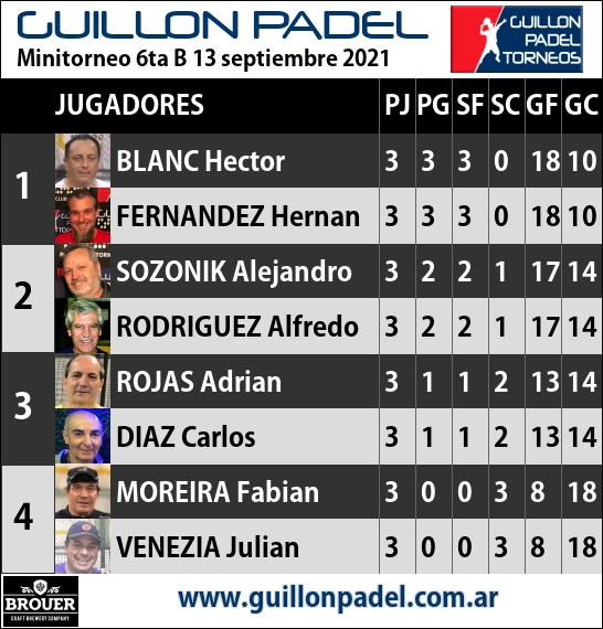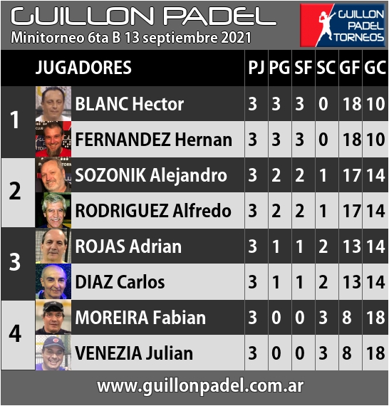 | Torneo Guillon Padel | J | G | SF | SC | GF | GC | ||