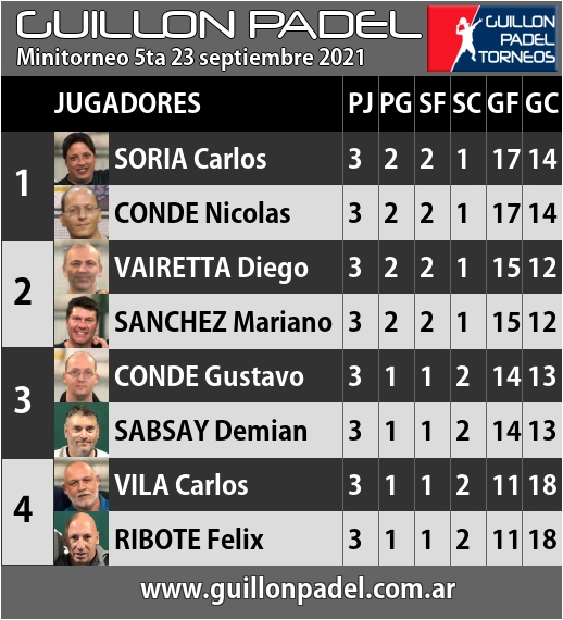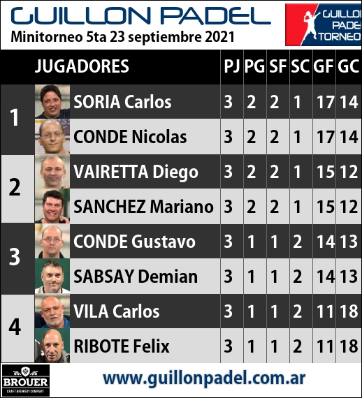 | Torneo Guillon Padel | J | G | SF | SC | GF | GC | ||