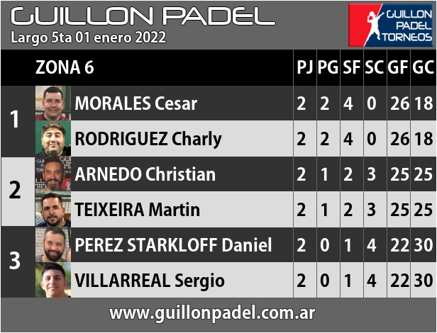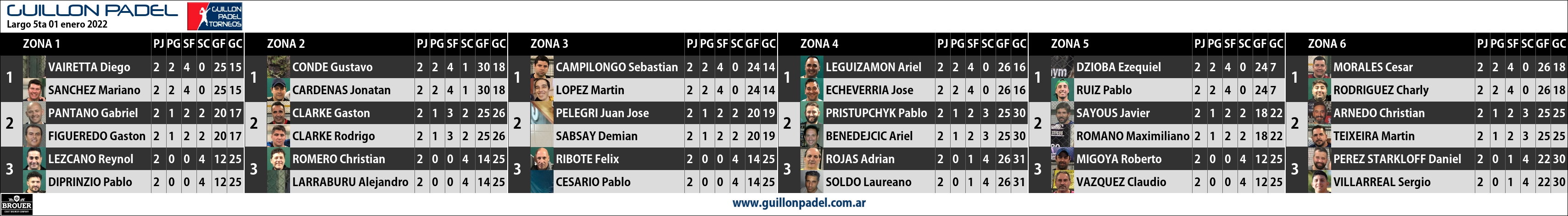 | Zona 6 | J | G | SF | SC | GF | GC | ||