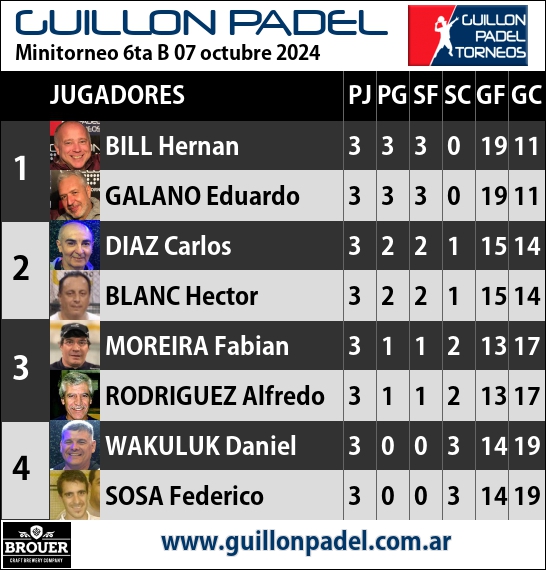 | Torneo Guillon Padel | J | G | SF | SC | GF | GC | ||